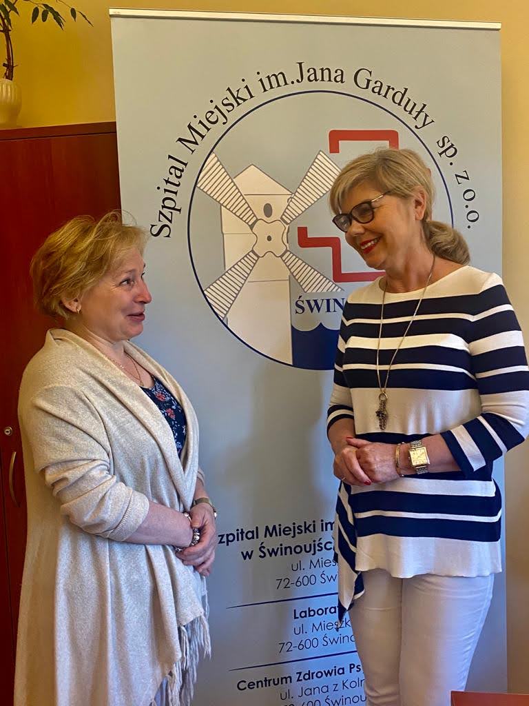 W dniu 02.06.2020r odwiedziła nas Pani Lidia Lech – Oddziałowa Kliniki Reumatologii Chorób Metabolicznych i Chorób Rzadkich Centralnego Szpitala Klinicznego MSWiA w Warszawie. Podczas spotkania z Prezes Zarządu Szpitala Miejskiego im. Jana Garduły w Świnoujściu sp. z o.o. dr Elżbietą Kasprzak zostały wymienione spostrzeżenia i przeżycia związane z pracą w szczególnych warunkach związanych z zagrożeniem zakażenia koronawirusem, zarówno pacjentów, jak i personelu medycznego w obu szpitalach.
